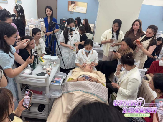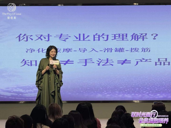 作为“全息细胞喂养”体系的原创者,高董亲临惠州站现场,为参会家人深度拆解这一差异化、可落地的东方养肤方案。她从营养体系的重构出发,详细讲解了如何通过科学喂养逻辑,激活皮肤自身的吸收与代谢能力。搭配“怡学消水肿术”,真正实现了从认知到业绩、从店内到家居住的全链路打通。